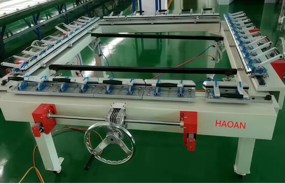 The double-clamp mechanical screen stretching machine is equipped with a Taiwan imported turbine worm gearbox for stable power transmission. It features gears, racks and linear bearings for smooth linear guiding, plus precision dovetail groove double aluminum chucks. By upgrading from traditional chain drive, this machine delivers uniform stretching force, improved accuracy and easier operation.